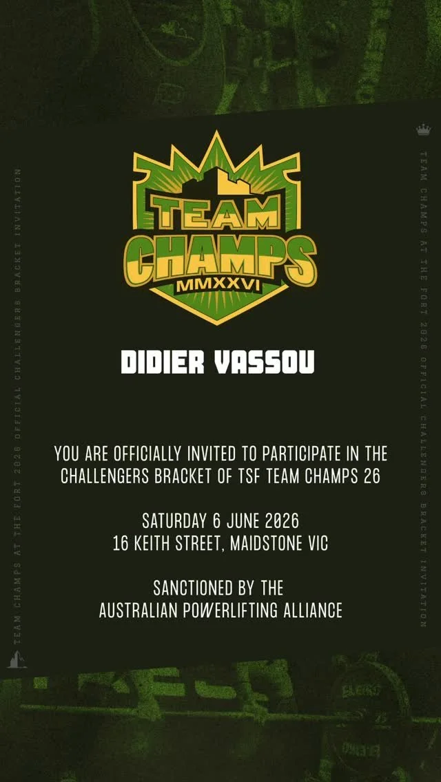 The Team Champs is an annual powerlifting competition held at The Strength Fortress. While a traditional powerlifting competition is based on the individual result, the Team Champs centres around a team element; where scoring and results are based on a team result.